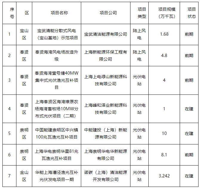 上海市2023年陸上風(fēng)電和光伏電站開(kāi)發(fā)建設項目清單