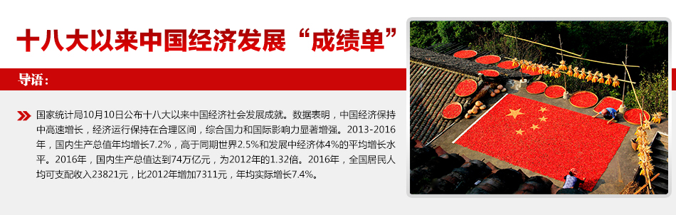 綜合實(shí)力不斷增強。2016年,國內生產(chǎn)總值達到74萬(wàn)億元,按不變價(jià)計算為2012年的1.32倍;一般公共預算收入接近16萬(wàn)億元,為2012年的1.36倍;谷物、肉類(lèi)、花生、鋼鐵、汽車(chē)等多種工農業(yè)產(chǎn)品產(chǎn)量居世界首位;高速鐵路里程2.3萬(wàn)公里,位居世界第一;2016年年末國家外匯儲備超過(guò)3萬(wàn)億美元,今年8月末達3.09萬(wàn)億美元,繼續保持世界首位。2016年,人均國民總收入(GNI)達到8260美元,在世界銀行公布的216個(gè)國家(地區)人均GNI排名中,我國由2012年的第112位上升到2016年的第93位。