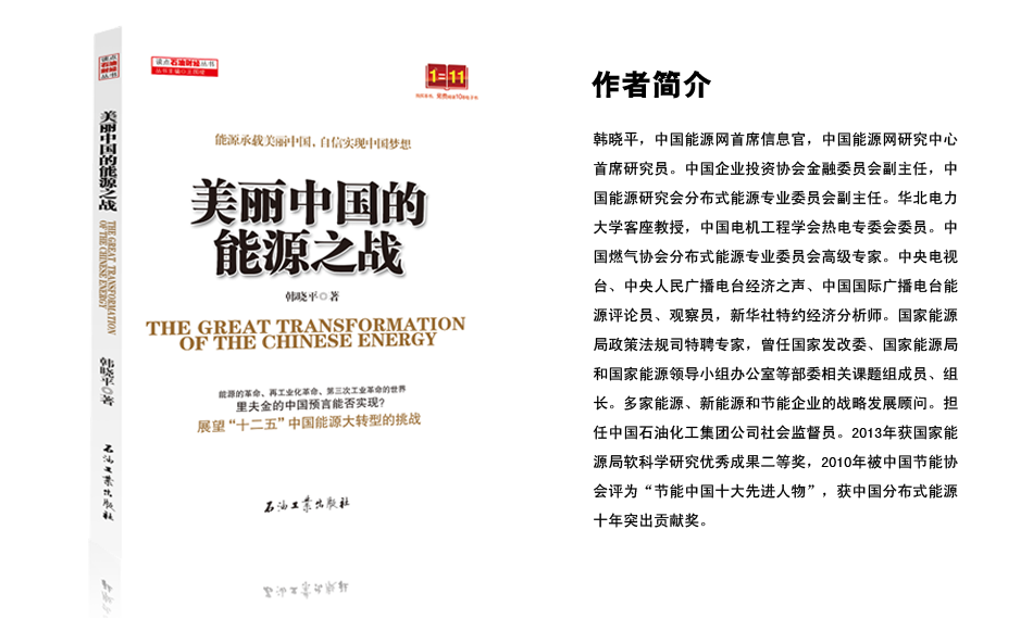 金秋是成熟的季節,也是收獲的季節。雖然,涼風(fēng)習習,有時(shí)細雨綿綿。但是,秋天的美是清澈的,霧霾也是令人不安。就在這四處都是金黃一片的十月,中國能源網(wǎng)韓曉平先生寫(xiě)了一本書(shū),《美麗中國的能源之戰》,將由中國石油工業(yè)出版社近期出版,讓我們共同收獲這一份卓有成就的能源大作。 [詳細]
