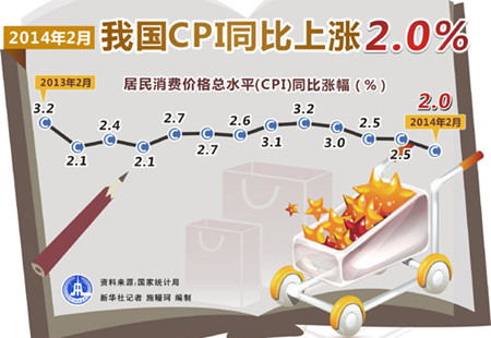 節日影響減弱致2月CPI回落 全年調控目標有望實(shí)現國家統計局9日發(fā)布的數據顯示,2月份全國居民消費價(jià)格總水平(CPI)同比上漲2.0%,比1月份同比漲幅回落0.5個(gè)百分點(diǎn),創(chuàng )去年2月以來(lái)的新低。分析人士指出,2月CPI漲幅回落的主要原因是春節過(guò)后食品價(jià)格明顯下降。預計全... [詳細]