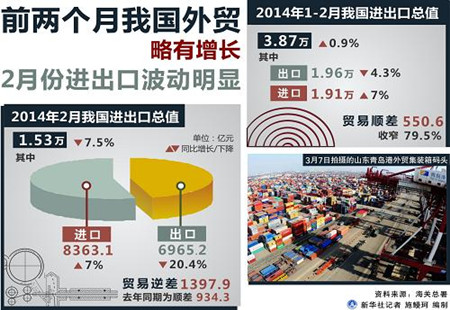 2月貿易逆差近230億美元 分析稱(chēng)3月份或將恢復2月份,我國進(jìn)出口總值2511.8億美元,同比下降4.8%。其中,出口1141億美元,下降18.1%;進(jìn)口1370.8億美元,增長(cháng)10.1%;貿易逆差229.8億美元,去年同期為順差148億美元。業(yè)內人士分析認為,春節因... [詳細]