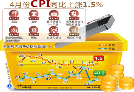 PPI環(huán)比降幅擴大 穩增長(cháng)效果或在三季度顯現9日上午,國家統計局發(fā)布數據,2015年4月,中國CPI同比上漲1.5%,環(huán)比降0.2%;PPI同比下降4.6%,環(huán)比降0.3%,雙雙低于預期。海通證券副總裁、首席經(jīng)濟學(xué)家李迅雷表示,PPI環(huán)比降幅擴大,實(shí)際利率居高不下... [詳細]