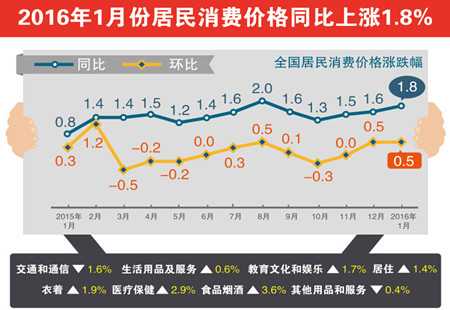 國家統計局18日發(fā)布的數據顯示,1月份全國居民消費價(jià)格指數(CPI)環(huán)比上漲0.5%,同比上漲1.8%。1月份,居民消費價(jià)格環(huán)比上漲較多,同比漲幅有所擴大,原因... [詳細]